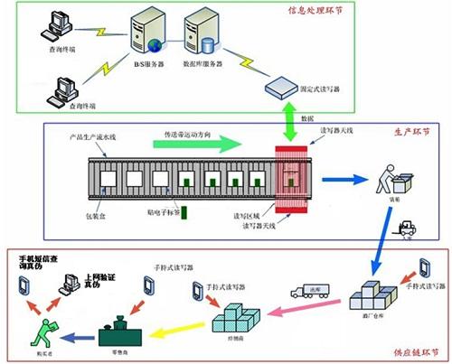 中國一直以來(lái)都被稱(chēng)之為假貨大國,假冒偽劣的產(chǎn)品不僅給企業(yè)和消費者帶來(lái)切身利益的損失,同時(shí)也嚴重影響著(zhù)國家的經(jīng)濟發(fā)展和聲譽(yù)。隨RFID技術(shù)的成熟發(fā)展和應用普及, RFID標簽具有唯一碼,相當于給每個(gè)產(chǎn)品發(fā)放了身份證,且由于其承載的是電子式信息,其數據內容可經(jīng)由密碼保護。使其內容不易被偽造及變造,與其他標簽相比,更具有產(chǎn)品的安全防偽性能。而且由于其唯一性,導致其仿制難度大,成本高。因此使用RFID標簽可以真正幫助品牌商達到防偽防竄貨的目的。